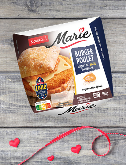 Burger Poulet de Loué Marie et les fermiers de Loué s’associent et vous présentent leur dernière création à retrouver au rayon frais !