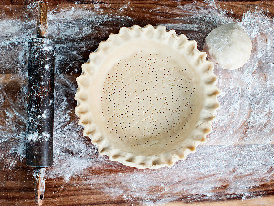 3. Piquez délicatement la pâte à tarte sur toute sa surface (dont les bords) à l’aide d’une fourchette de manière régulière pour faire circuler l’air sous la pâte et éviter qu’elle ne gonfle.