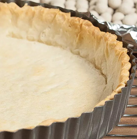8. Si la garniture ne nécessite pas de cuisson, prolongez la cuisson à vide de 5 minutes jusqu’à coloration totale puis démoulez délicatement. Une fois refroidi, votre fond de tarte est prêt à être garni ! Si la garniture nécessite une cuisson, disposez-la sur la pâte à tarte et enfournez à nouveau. Le temps de cuisson dépendra de votre four et du type de garniture.