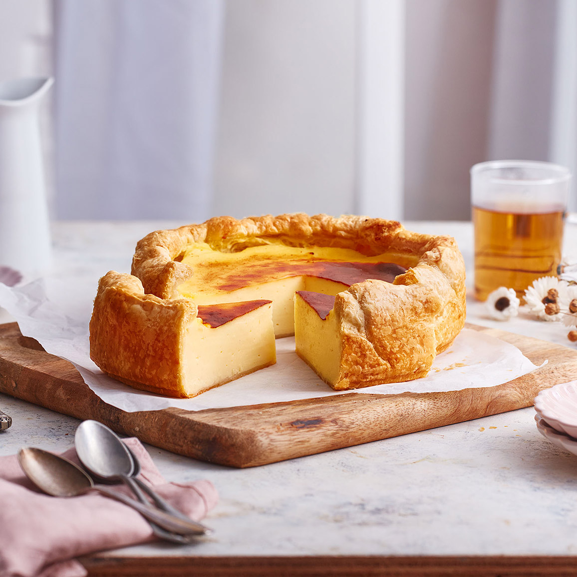Versez dans le moule garni de pâte, et enfournez à 180°C (Thermostat 6) pendant 35 minutes, puis à 90°/120°C pendant 15 minutes. A la sortie du four, laissez reposer puis placez au réfrigérateur.