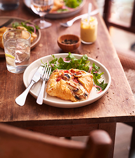 Accompagnez votre tarte d’une salade verte, elle aussi agrémentée d’herbes thaï.