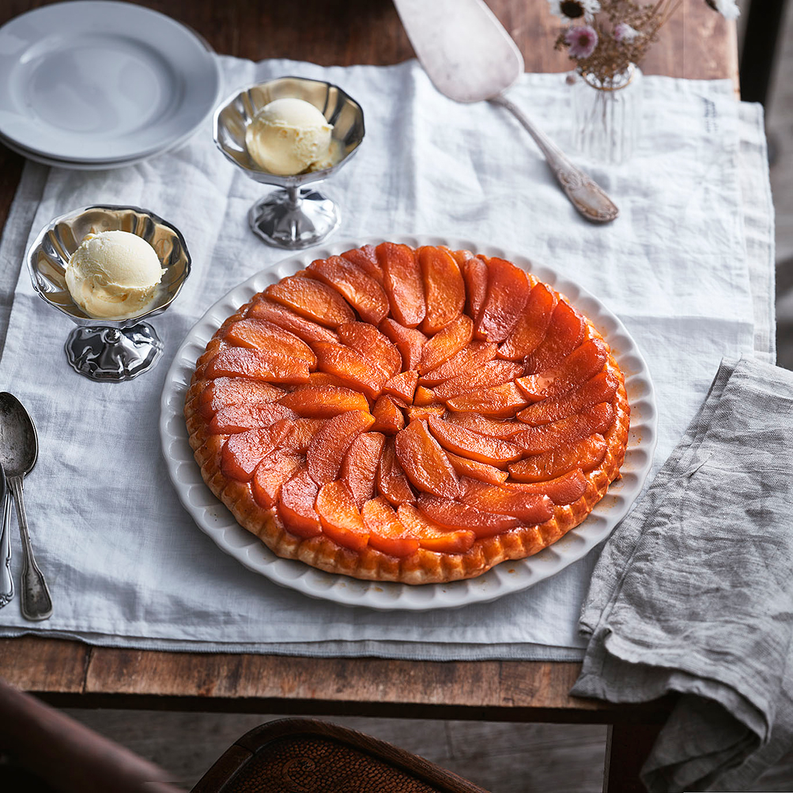 Pour plus de gourmandise, vous pouvez servir la tarte tiède accompagnée de crème fraiche épaisse ou d’une boule de glace à la vanille.