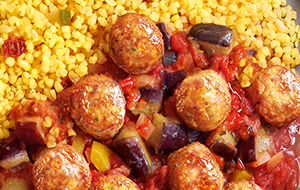 Bouchées aux pois chiches Caponata boulgour aux légumes