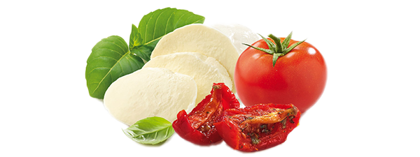 MOZZARELLA : origine UE. Tomate mi-séchée aux plantes aromatiques : origine Turquie.