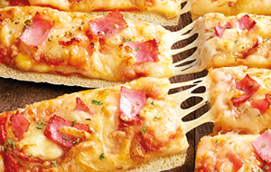 De beaux morceaux de jambon supérieur fumé, de l’emmental, de la mozzarella filante, et une sauce tomate cuisinée par nos soins, le tout sur une pâte crousti-moelleuse déjà prédécoupée en 12 parts.