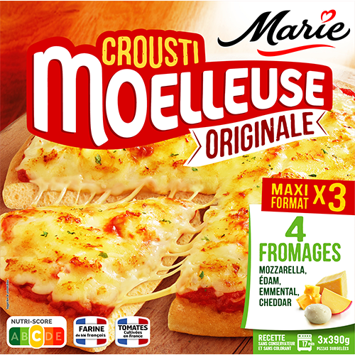 Marie sélectionne des ingrédients de qualité : de la farine 100% origine France, du porc né, élevé et préparé en France et des charcuteries conservées sans nitrites.