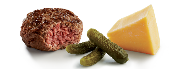 pâte 51,5% (farine de BLÉ origine France 31%, eau, huile de colza, levure boulangère, sel, sucre), sauce burger 14,7% [eau, FROMAGE blanc, double concentré de tomates, oignon en poudre, crème fraîche, huile de colza, miel de fleur, jus de citron vert, amidon de maïs, sel fumé, vinaigre d’alcool, épices et plante arômatique, sel, purée de piments (piments, sel), paprika fumé, purée d’ail], MOZZARELLA 13,5%, viande de boeuf VBF cuite origine France 7,3%, tomates cerises, CHEDDAR blanc 3,2%, cornichons au vinaigre 3,1% (cornichons, vinaigre d’alcool, eau, sel), oignons rouges, tomate en poudre, oignon en poudre.