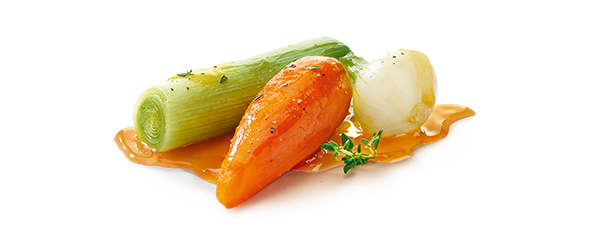 petits légumes façon pot-au-feuUne alliance de deux classiques de la cuisine française, le hachis parmentier et le pot-au-feu, sublimée par une purée de pommes de terre dressée en viennois.