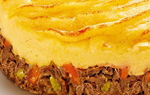 purée 59% (pommes de terre 46,5%, BEURRE concentré, crème fraîche, eau, sel, muscade, poivre), effiloché de viande de bœuf de race charolaise cuite origine France et jus de cuisson 15,5%, eau, poireaux 5,9%, carottes 5,2%, oignons préfrits 2,2% (oignons, huile de tournesol), MOUTARDE de Dijon (eau, graines de MOUTARDE, vinaigre d’alcool, sel), fond de veau (bouillon de veau, bouillon de bœuf, sel), BEURRE concentré, amidon de maïs, thym.