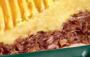 Un délicieux parmentier lentement gratiné au four, préparé à base de de canard confit 100% français et de champignons de Paris. Le tout accompagné d’une purée au beurre réalisée le jour même dans notre atelier.