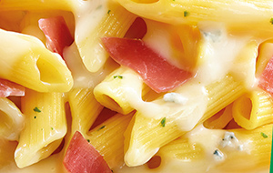 jambon fuméUne recette gourmande de pâtes avec une sauce onctueuse au gorgonzola AOP et à la crème fraîche, et avec du jambon fumé origine France.