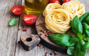 compotée de tomates et tagliatelles au pestoDes petites gambas cuisinées avec une compotée de tomates au parmesan et des tagliatelles enrobées de pesto pour un bon goût de basilic.