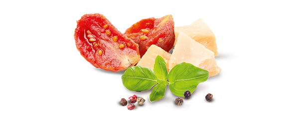 tagliatelles cuites 36,5% (eau, semoule de BLÉ dur, OEUFS de poules élevées en plein air, huile de colza), GAMBAS décortiquées 22,7% [GAMBAS (CRUSTACE), eau, sel], eau, coulis de tomate 8%, tomates 5,3%, épinards 2,1%, oignons, double concentré de tomates 2%, huile de colza 1,8%, FROMAGE 1,6%, tomates semi-déshydratées et marinées 1,2% (tomates, huile de colza, sel, origan, ail), bouillon de légumes [légumes et jus de cuisson de légumes (tomates, oignons, poivrons, aubergines grillées, ail, courgettes), huile d’olive vierge, sel, poivre], huile d’olive vierge 0,5%, farine de BLÉ, basilic 0,2%, jus de citron concentré, sel, extrait de basilic, purée d’ail 0,1%, paprika, curcuma, poivre, persil.