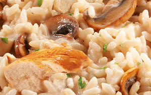 champignon et parmesanUn risotto crémeux au poulet et aux champignons fondants, avec toute la gourmandise de la crème et du parmesan pour un plaisir généreux et réconfortant .