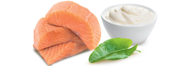 SAUMON ATLANTIQUE 49%, eau, crème fraîche 6,3%, vin blanc (contient SULFITES), oignons 4%, oignons 4%, oseille 2,8%, BEURRE 1%, amidon de maïs, farine de BLÉ, LAIT écrémé en poudre, sel, vinaigre d’alcool, poivre.