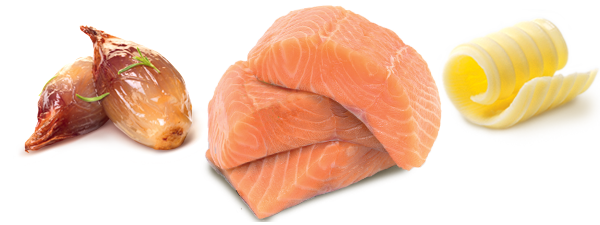 Du saumon fondant accompagné d’une sauce au beurre blanc avec des échalotes cuisinées au vin blanc.