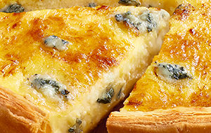 Emmental, Bleu d'Auvergne AOPUne tarte à la pâte feuilletée pur beurre croustillante et fondante avec une garniture inédite et généreuse en fromages : emmental et Bleu d’Auvergne AOP. Une recette gourmande à partager en famille.