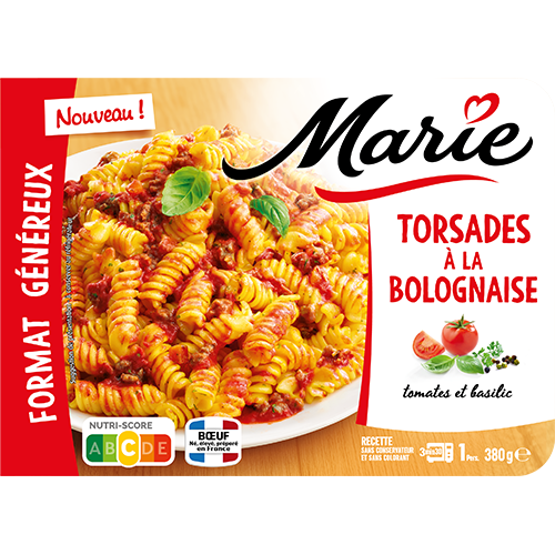 Parce que Marie cuisine avec passion, ce nouveau format allie générosité et gourmandise ! Une recette pleine de saveurs, cuisinée avec du bœuf 100% origine France, une sauce tomate savoureuse, de délicieuses torsades et une touche de basilic.